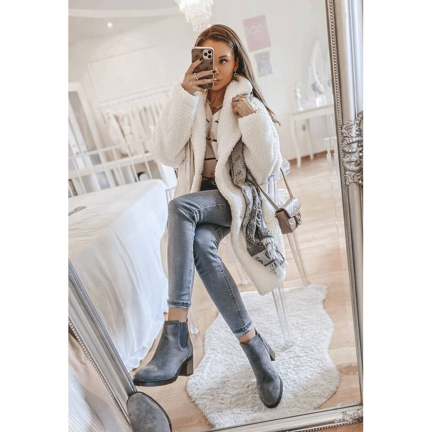 Hanah - grå stövlar på posten som kommer att komplettera varje daglig stilisering. En klassisk mandeltå och en stabil klacktyp (block) med en höjd av 6 cm ger ett elegant utseende och komfort att bära. Tillverkad av ekologiskt läder med mocka finish, med en praktisk blixtlås på sidan - lätt att ta på sig och ta av. Mjuk isolering inuti garanterar komfort på svalare dagar, varför de kommer att arbeta perfekt under våren och hösten.
