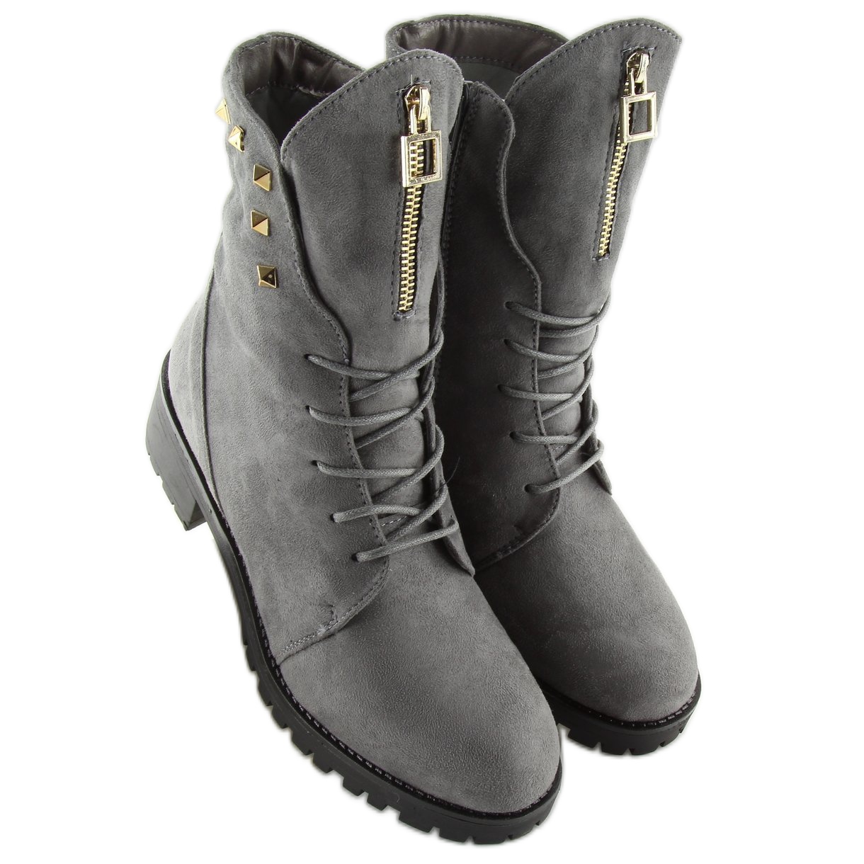Snygga arbetsstövlar i grått HX-015 Grå är ett perfekt val för varje kvinna som värdesätter både komfort och moderiktigt utseende. Tack vare subtila men effektiva dekorationer i form av dubbar och en dekorativ dragkedja på plösen lägger dessa stövlar en rockig accent till varje styling.
