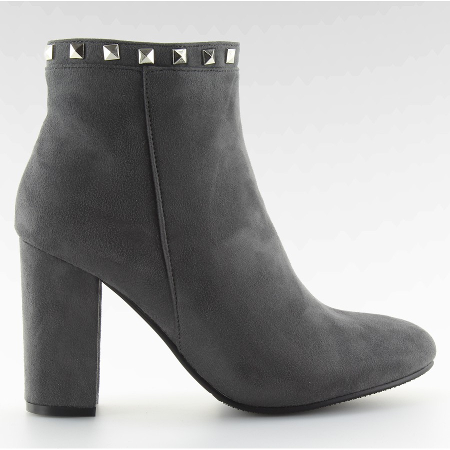 Detaljer: Gråa och gråa högklackade stövlar med nitar