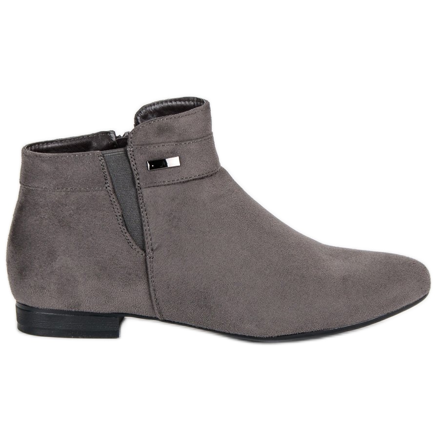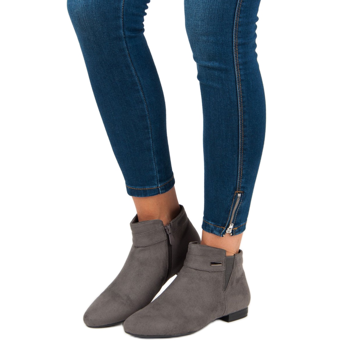 Upptäck elegans och komfort i alla situationer med grå platta ankelboots från Vinceza. Dessa snygga skor, gjorda av ekologiskt mockaläder, kombinerar perfekt estetik med komfort. De har en rund tå och en 2 cm hög platt klack, vilket gör dem till ett idealiskt val för dagligt bruk, och ger samtidigt en subtil charm till varje styling.