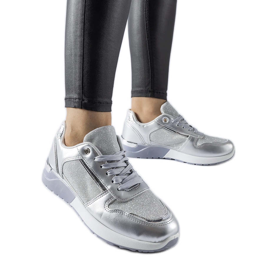 Deras unika utseende med en dekorativ tråd lägger till subtilitet och originalitet, tack vare vilka dessa sneakers blir ett oundgängligt element i garderoben för varje fashionabla kvinnor. Rökig grå med en delikat silver accent ger dem en elegant och samtidigt sportig karaktär, tack vare vilken de är lätta att kombinera med olika stiliseringar.