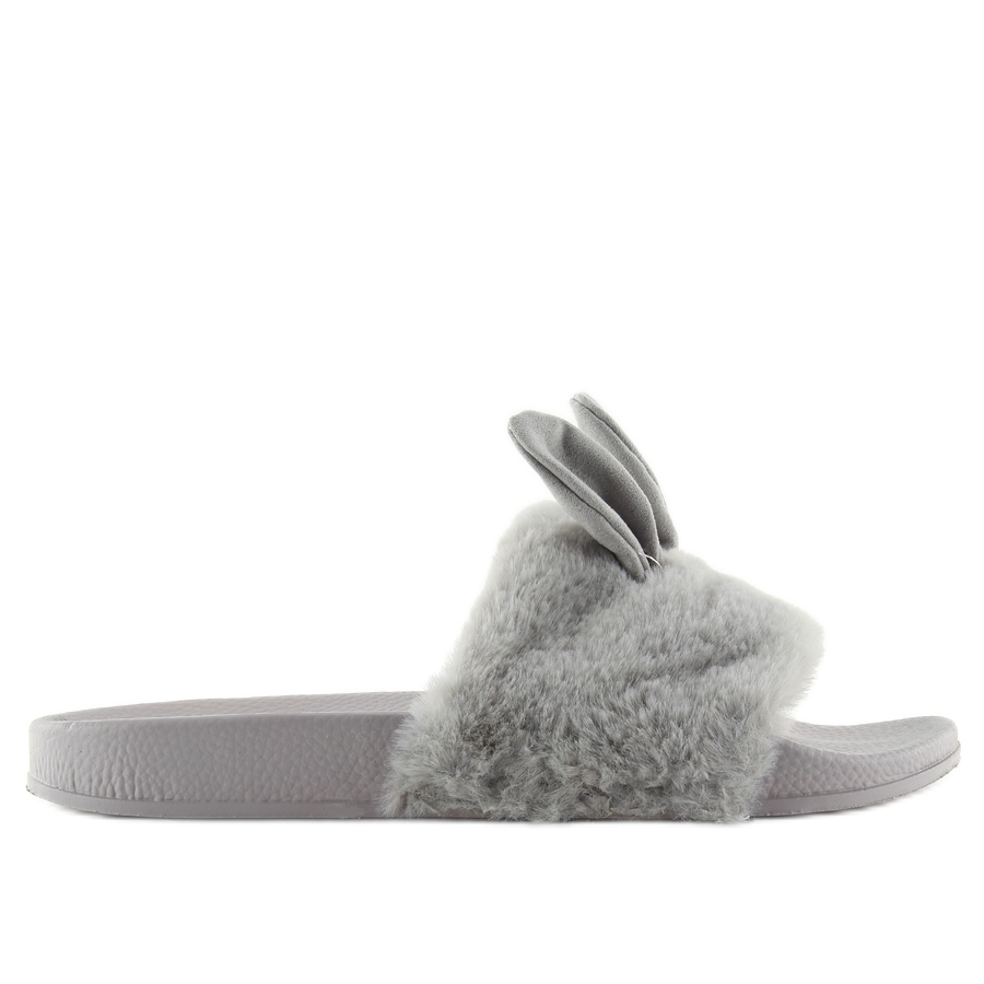 Upptäck komfort och stil med flipflops med päls och öron i en elegant grå nyans (modell 58-21). Dessa snygga flip-flops för kvinnor är den perfekta kombinationen av moderiktig design och funktionalitet. Designade på en profilerad sula, anpassar de sig perfekt till formen på foten, vilket säkerställer maximal komfort under användning.