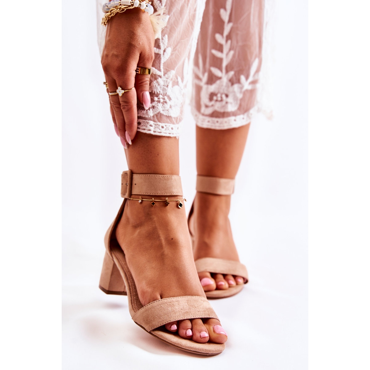 Sandalerna har en öppen, rundad tå och ett justerbart ankelband som gör att de passar perfekt till vilken fot som helst. En mjuk innersula av naturläder säkerställer komfort även vid långvarig användning. Tack vare låga klackar på 5,5 cm kommer dessa sandaler att vara ett utmärkt val för vardagsutflykter, promenader runt staden eller möten med vänner.