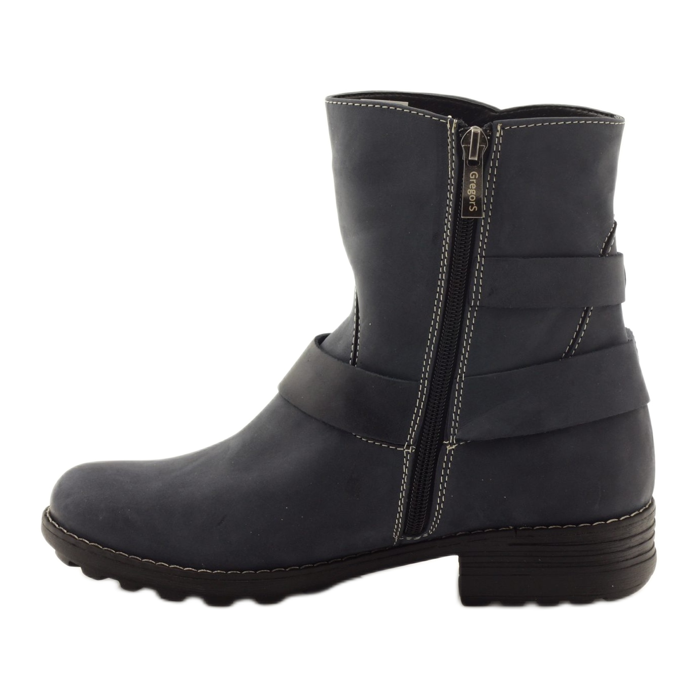 Eleganta och funktionella vinterstövlar av det polska märket Gregors, modell 544. Helt gjorda av nubuck, naturligt läder, isolerade med delikat päls, de garanterar värme och komfort även under kallare dagar. Den klassiska marinblå nyansen och den intressanta ovandelen gör att skorna passar både till vardags och lite mer eleganta stilar.