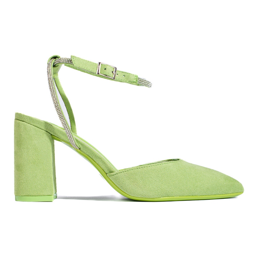 SHELOVET Grön mocka pumps med öppen klack från Shelovet
