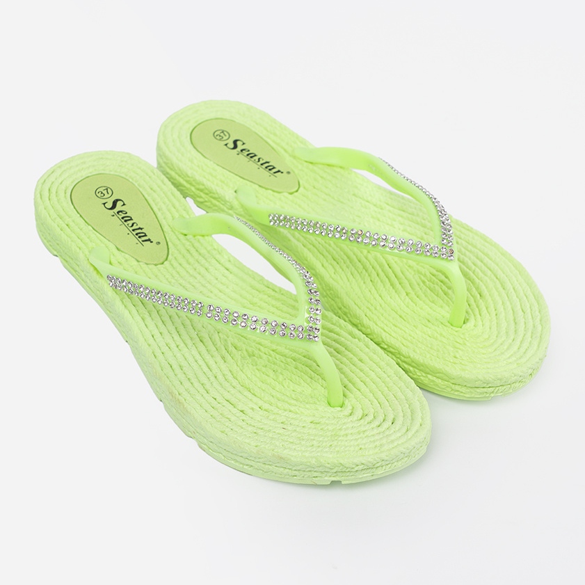 Vi presenterar den extremt snygga Seastar Flip -flops i en modern grön färg, som perfekt kombinerar elegans med komfort. Dessa eleganta kvinnors flip -flops skapades för varma dagar, vilket utgör det perfekta tillskottet på stranden eller under sommarvandringar.
