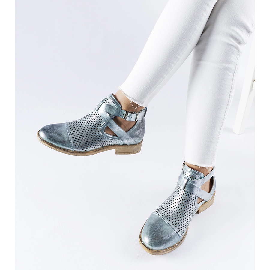Gröna, genombrutna, högskurna Kooter-stövlar är det perfekta valet för kvinnor som vill kombinera mode med komfort. Dessa snygga stövlar, gjorda av ekologiskt läder av hög kvalitet, kännetecknas av ett unikt genombrutet mönster som passar perfekt med sommarstilar.