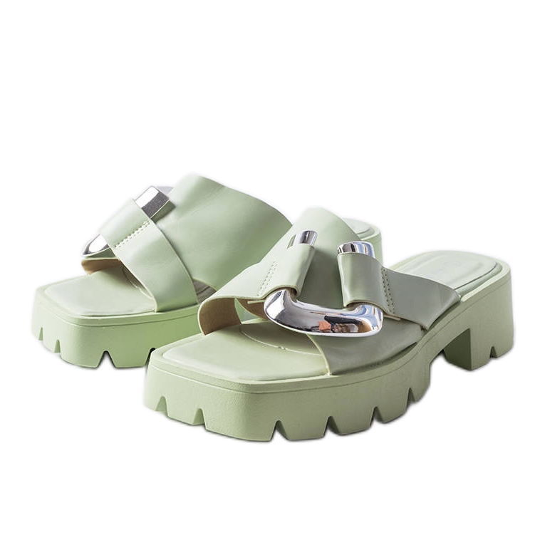 Snygg och funktionell - Gröna flip-flops med traktorsula från Carceri är ett idealiskt val för kvinnor som värdesätter komfort, men inte vill ge upp ett moderiktigt utseende. Intressanta färger och ytterligare dekorativa element i form av strass gör dessa flipflops iögonfallande och ger karaktär till sommarstyling.