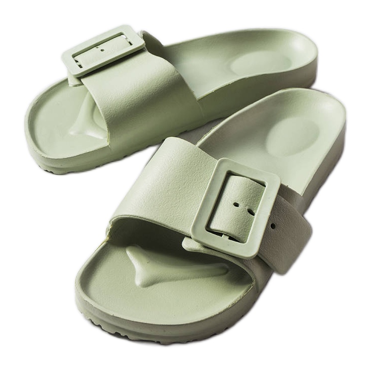 Deras distinkta gröna färg, kallad helt enkelt "Grön" av tillverkaren, ger fräschör och gör att de matchar perfekt med sommarstilar. Spännet är inte bara ett intressant dekorativt element, utan låter dig också anpassa skons passform till fotens bredd, vilket är en ytterligare fördel.