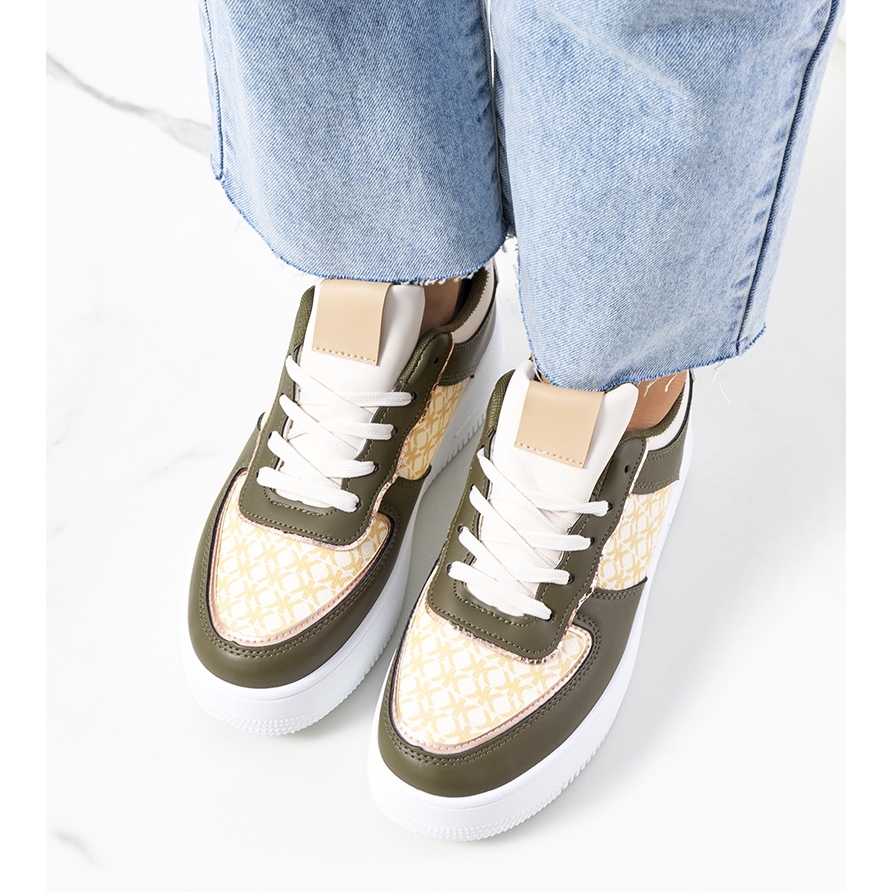 Lär känna de gröna Manal damsneakers i en nyans av beige och khaki - en väsentlig del av varje sommargarderob! Dessa fashionabla sneakers kännetecknas av en modern design och en bekväm, hög sula som garanterar komfort även hela dagen.