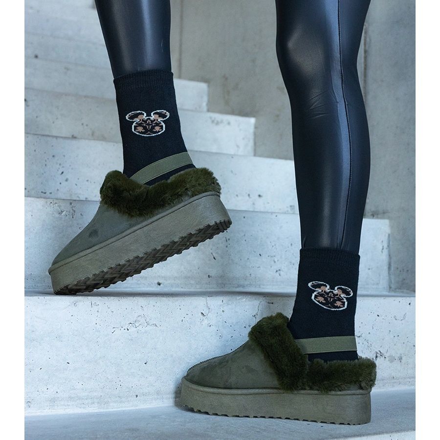 Gröna tofflor på Frank -plattformen är ett utmärkt val för varje kvinna som vill kombinera komfort med elegant stil på vinterdagar. Deras varma, pälsfoder skyddar effektivt fötterna från kylan, och elastiken vid hälen gör det lättare att ta på sig och säkerställer stabilitet när man bär.