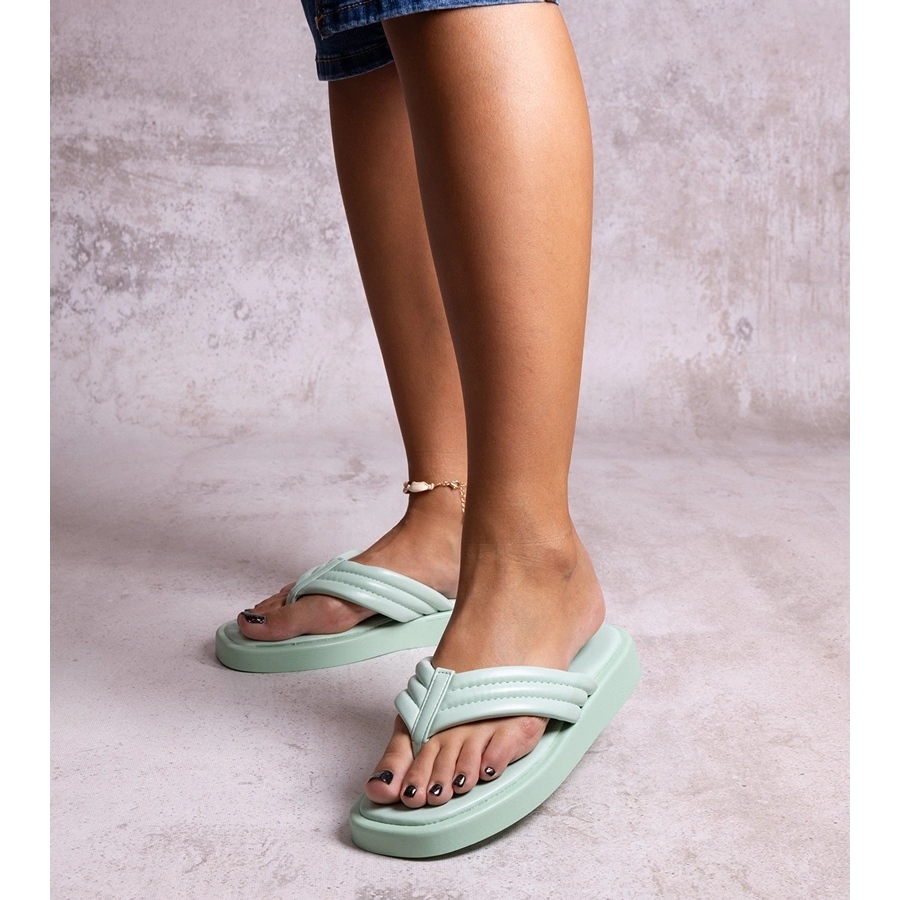 Shishal Flip -flops i en vacker nyans av grönt har ingen näsa, som betonar deras sommar, fria karaktär. Tillverkade av ekologiskt läder och gummi är de inte bara fashionabla, utan också tar hand om miljön. De kommer säkert att fånga ögat och kommer att bli en hit i sommar!