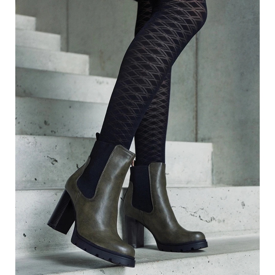 Gröna insatta stövlar på Eco-Leather Post är det perfekta valet för kvinnor som värderar både stil och komfort. Deras moderna design gör att de passar perfekt in i modetrender, och en stabil, hög häl med en höjd av 9,5 cm tillför elegans och smal figuren.