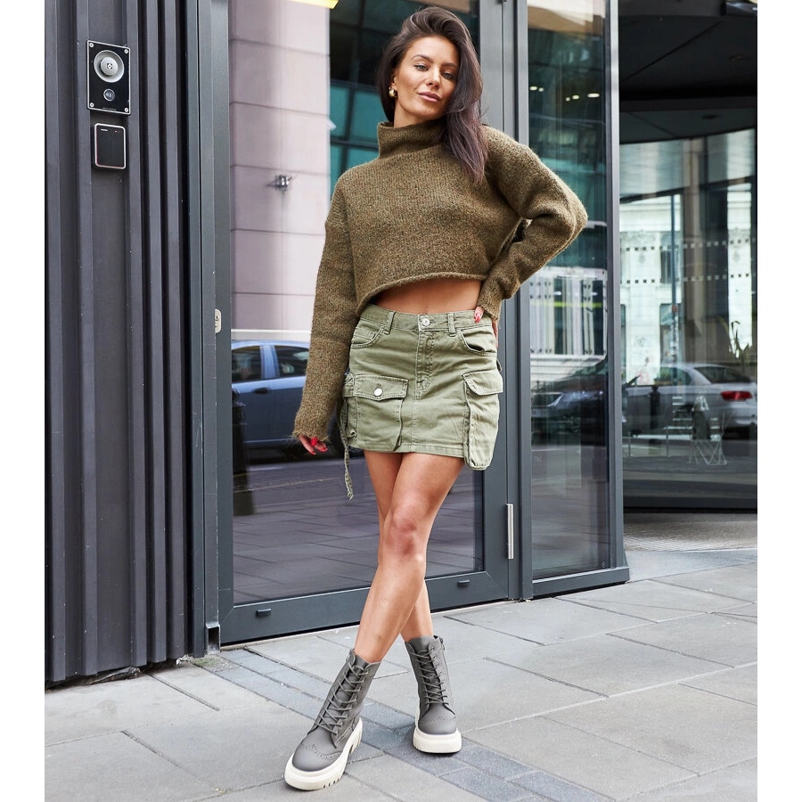 Gröna stövlar dekorerade med Nicla Stitching (JJ12P -modell) - Moderna, bekväma och eleganta skor för kvinnor som letar efter en stadsutseende med en antydning av svårighetsgrad. Tillverkade av högkvalitativt ekologiskt läder, i en intensiv nyans av grönt, kännetecknas de av dekorativa sömmar och en rund tå som betonar deras karaktär. Slottet gör det lättare att ta på sig, och snörning låter dig matcha skon till foten - perfekt för vardagliga stiliseringar under höstens säsongsäsong.