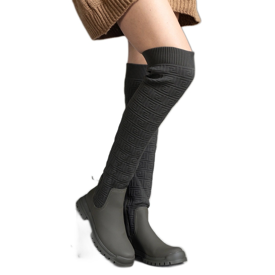 Kosackar som når över knäet (57 cm högt) matchar perfekt både vardagliga stiliseringar och fler utgångsskapningar. Grön färg är på topp den här säsongen, vilket gör att dessa skor perfekt passar in i nuvarande trender.