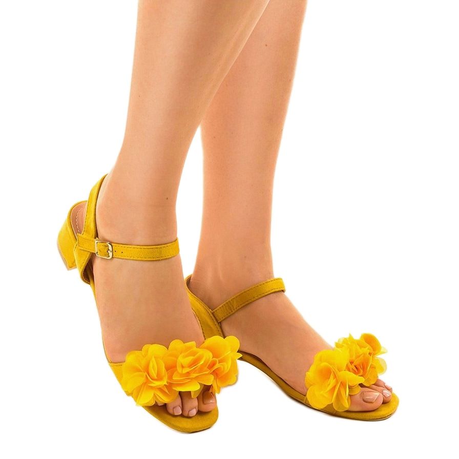 Detaljer: Gula högklackade sandaler med blommor X8903