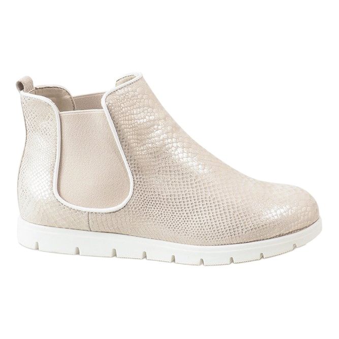 Upptäck elegans och originalitet med sportstövlar i guld 1602 i nyanser av beige och silver! Dessa extremt snygga Chelsea-stövlar, perfekta för kvinnor som vill sticka ut från mängden, kombinerar perfekt modedesign med komfort att bära.