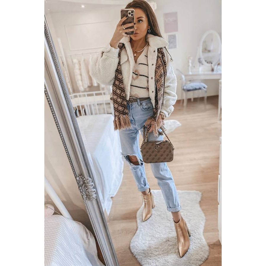 Stompboots är isolerade med ljus päls, vilket gör dem perfekta för vår- och höstdagar, då vädret kan vara nyckfullt. En stabil 9,5 cm hög stolpe förlänger inte bara benen optiskt utan ger också tillräckligt stöd när du går. Tack vare sin minimalistiska design, utan mönster eller ytterligare dekorationer, passar de perfekt in i principerna för avslappnat mode, och samtidigt kan de kombineras med mer eleganta stilar.