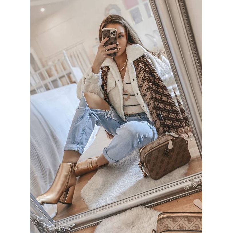 Gold Stomp högklackade ankelboots är det perfekta valet för kvinnor som vill kombinera elegans med komfort. Dessa snygga stövlar kännetecknas av lackläder i en vacker gyllene färg, som attraherar ögat och ger glans till varje styling. Den släta ovandelen som sträcker sig över ankeln säkerställer komfort och perfekt passform, och dragkedjan på insidan gör dem lätta att ta på.
