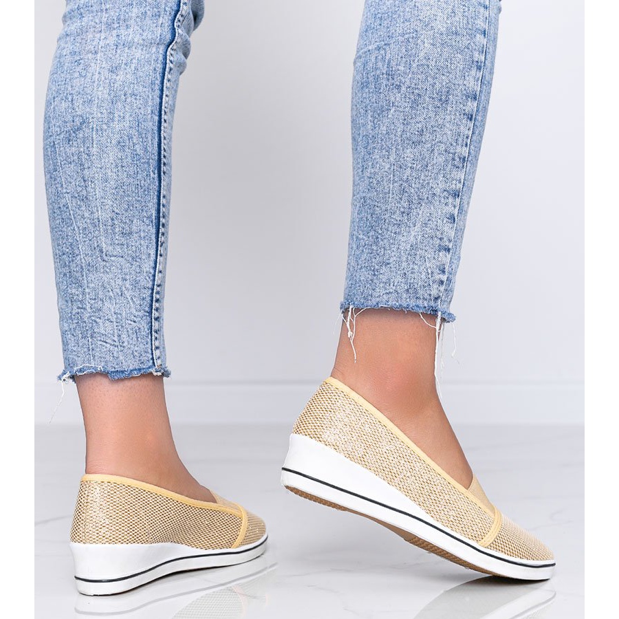 Golden Shiny Ballerinas on the Wedge Glam Star - Model 8310