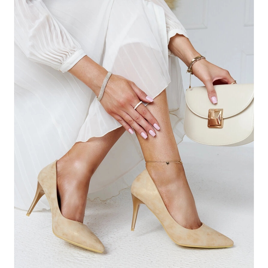 Dessa höga klackar är ett verkligt måste på våren och sommaren. Deras gyllene färg kommer säkert att fånga ögat, och den metalliska finishen möjliggör en perfekt kombination med olika kläder, från klassiska till mer djärva.