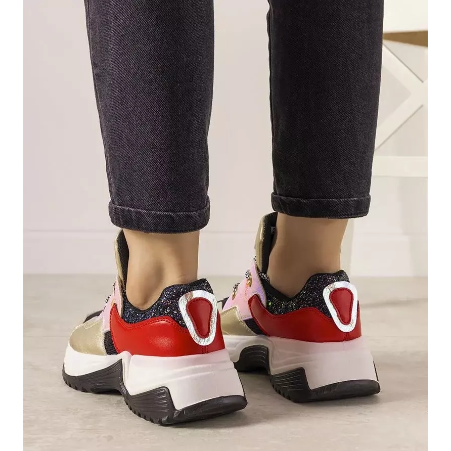 Gold Spring sneakers med hög sula är det perfekta valet för varje kvinna som vill kombinera komfort med extraordinär stil. Denna modell sticker ut i en fantastisk guldfärgad och elegant svart färg, vilket gör den till ett unikt inslag i en sportgarderob. Dessa sneakers, tack vare det elastiska bandet som sys under plösen, passar perfekt till foten och säkerställer komfort hela dagen.