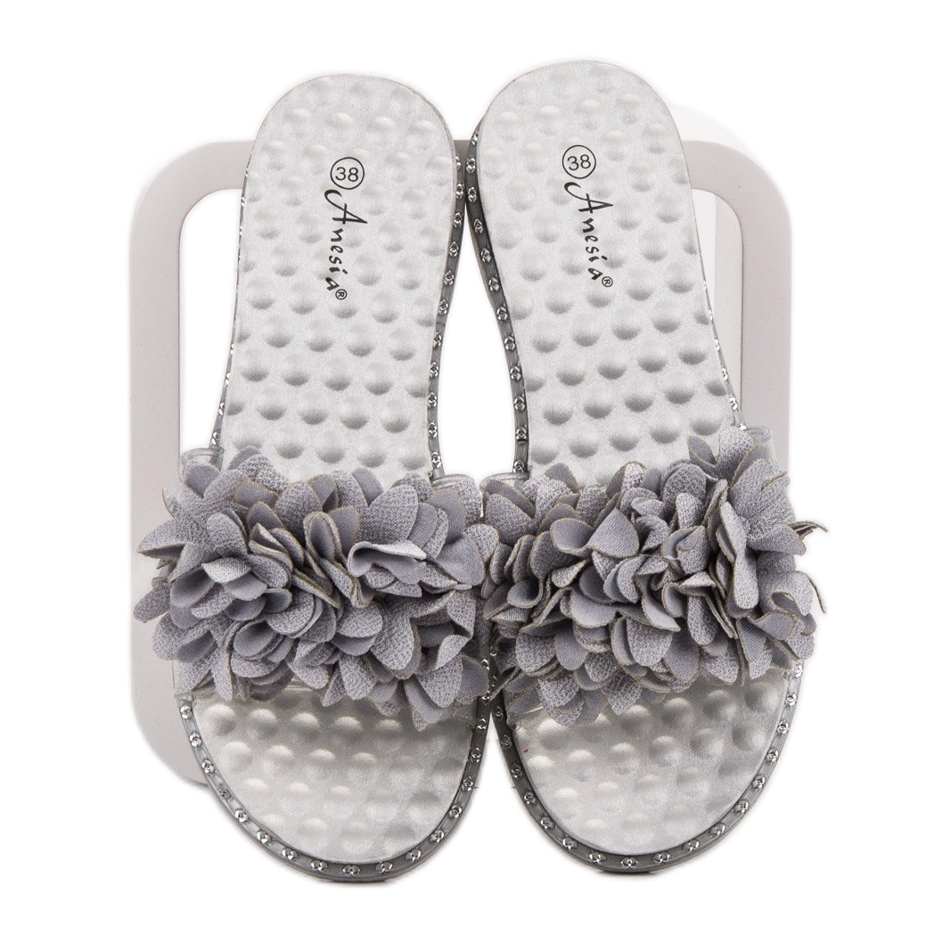 Information: Anesia Paris Gummi tofflor med blommor grå