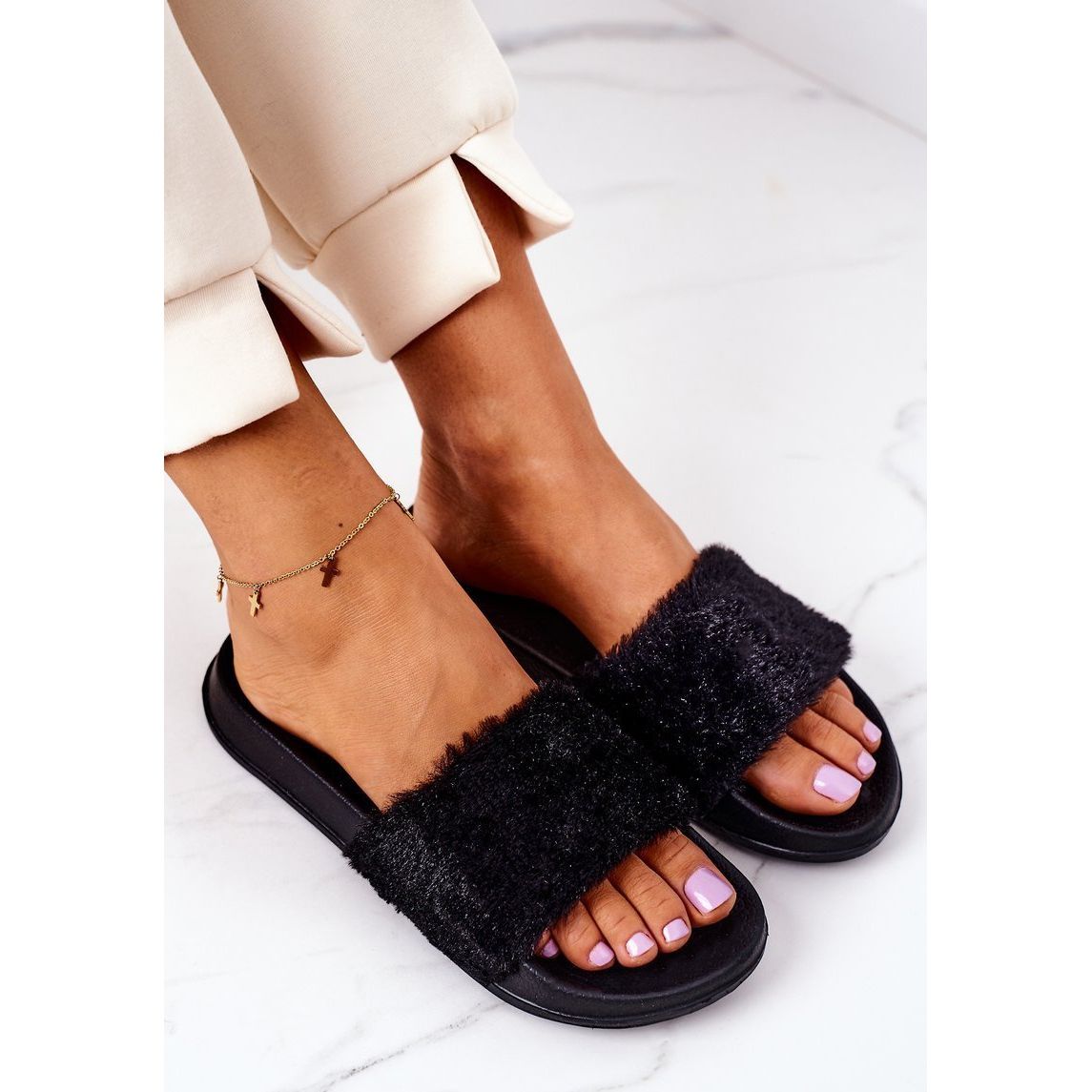 PE1 PE1 Gummi tofflor med päls svart Emery