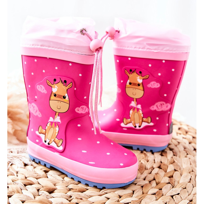Detaljer: Gummiregnstövlar för barn Fuchsia Glynnal Giraffe rosa