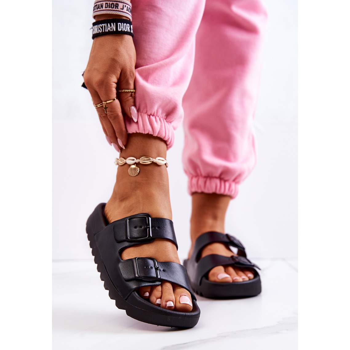 De är perfekta inte bara för stranden, utan också som eleganta flip-flops. Plattformshöjden på 3 cm och det skumgummi som används för att tillverka sulan säkerställer tillräcklig dämpning och stabilitet. Flip-flops finns i ett brett utbud av storlekar, och deras slip-on design med ett spänne gör det enkelt att sätta dem på.