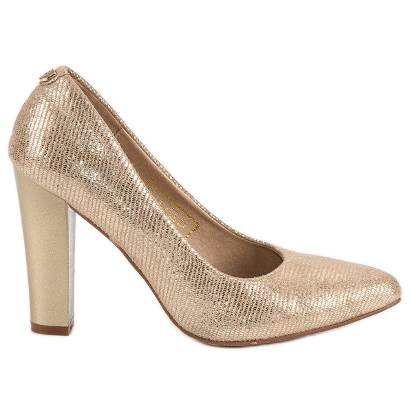 Vi presenterar extremt eleganta högklackade pumps från märket Filippo, som säkert kommer att dra till sig allas uppmärksamhet. Dessa guldpumpar är det perfekta valet för kvinnor som vill ge glans till sina vardags- eller kvällsstilar. De är gjorda av högkvalitativt tyg och ser lyxiga ut, och deras runda tå ger subtilitet och klass.