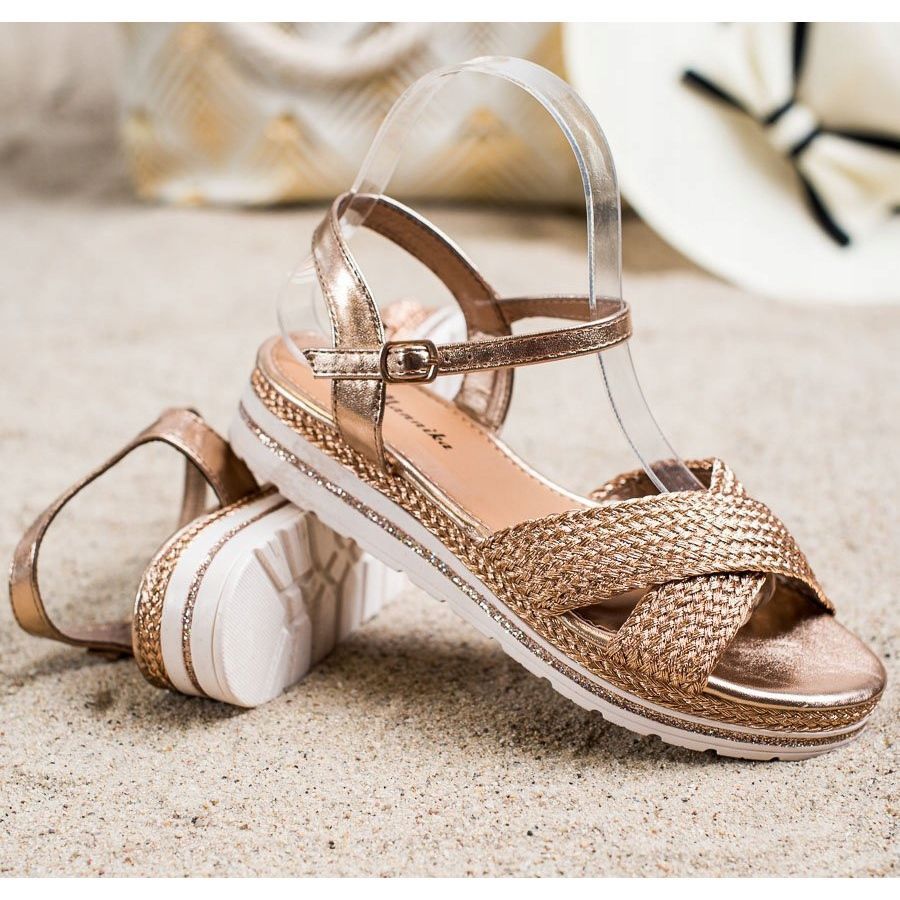 Perfekt för vår- och sommardagar, Mannika sandaler kommer att ge dig inte bara en stilfull look, utan också med komfort vid varje steg. Tack vare deras universella gyllene färger matchar de perfekt med olika stilar. Dessutom ger den syntetiska sulan med slitbana bra grepp, vilket är viktigt under vardagliga aktiviteter.