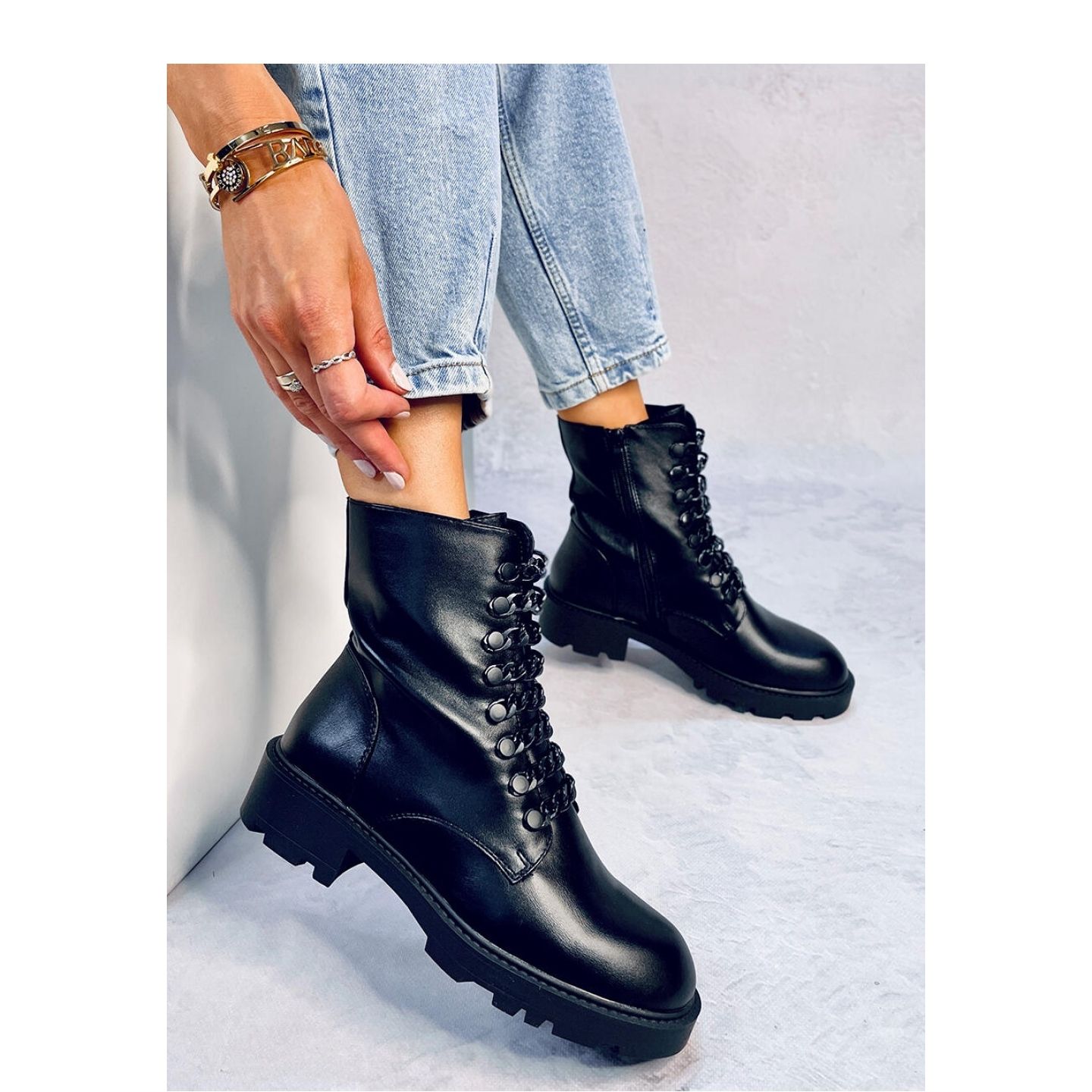 Här är Habber Black-arbetarna från Inello-det obestridda måste-ha i din garderob! Dessa eleganta, spannmålskvinnestövlar kännetecknas av en fashionabla snitt och spektakulära främre kedjor som ger dem en unik karaktär. Tillverkad av högkvalitativt organiskt läder kommer du säkert att ta hand om miljön utan att ge upp en unik stil.