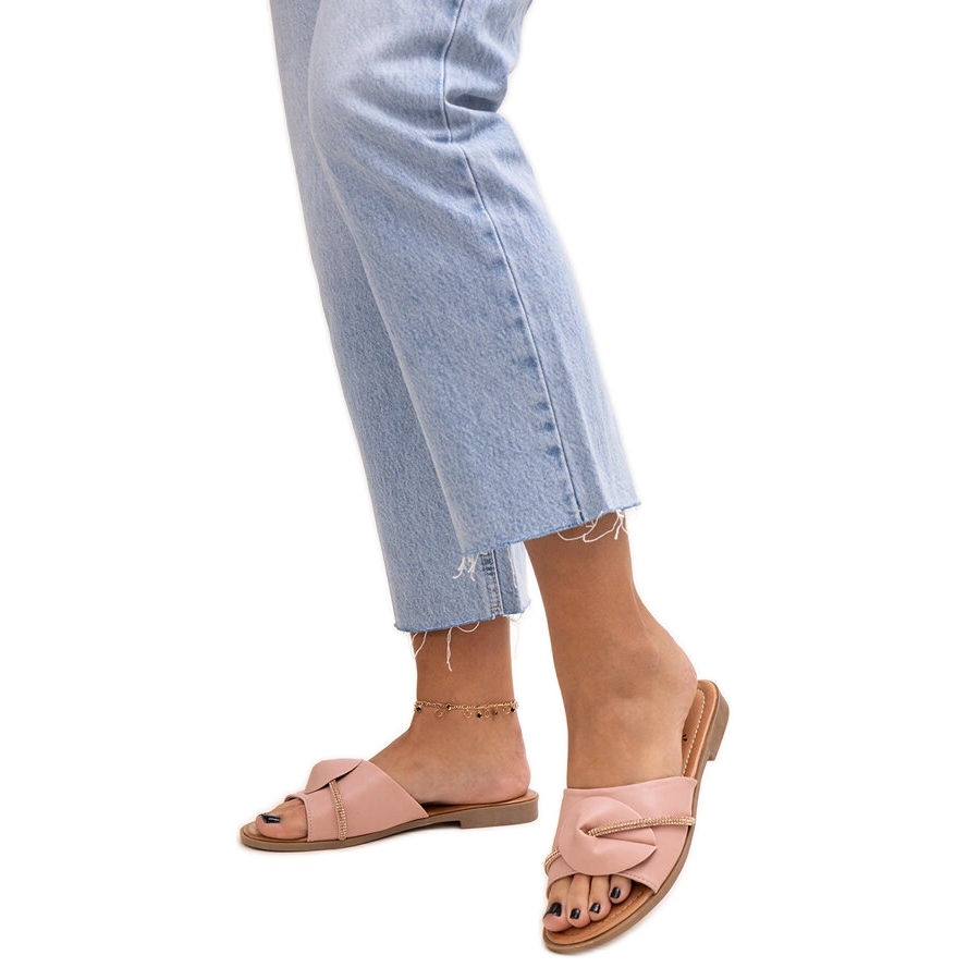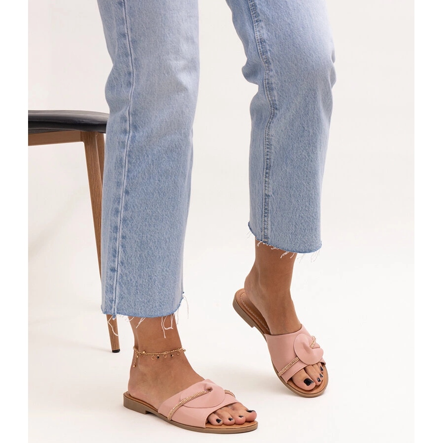Caps dekorerade med ett bälte med rosa amari zirkoner är ett utmärkt val för sommardagar som kombinerar komfort och fashionabla design. Tack vare slipen och runda nosk säkerställer dessa flip flops exceptionell bärande komfort under dagen. En snygg rem dekorerad med eleganta zirkoner ger dem en unik karaktär, vilket gör varje stiliseringsglöd.