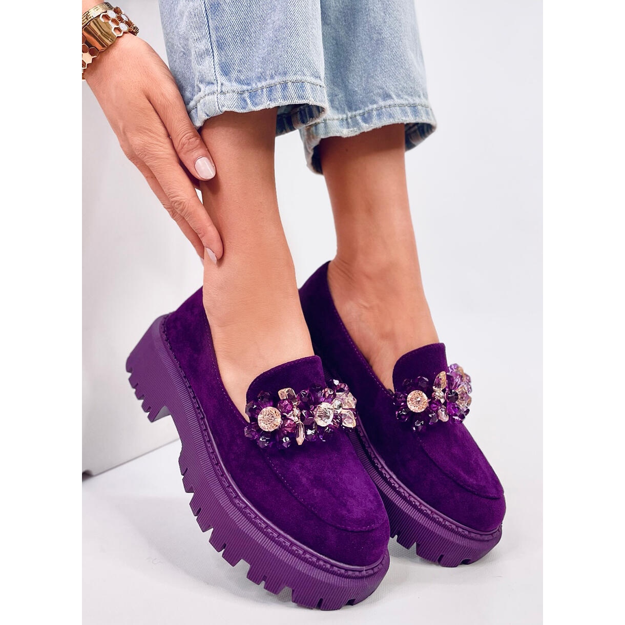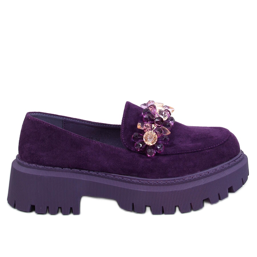 Heidi Purple loafers med kristaller är det perfekta valet för kvinnor som vill sticka ut från mängden. Dessa vackra lila loafers på en platt plattform kombinerar elegans och extraordinär stil, tack vare tillbehör i form av glänsande kristaller. Dessa är perfekta vardagsskor som framgångsrikt kan kombineras med mer formella kläder, vilket ger en touch av extravagans till vilken outfit som helst.