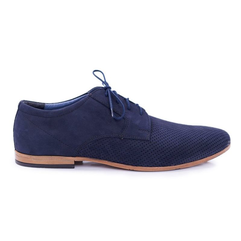 Lär känna Bednarek formella skor som kombinerar elegans med komfort! Dessa marinblå, genombrutna herrskor är gjorda av nubuckläder av högsta kvalitet, vilket garanterar inte bara ett attraktivt utseende, utan också hållbarhet och komfort att bära. Hermes-modellen passar perfekt in i aktuella modetrender och bibehåller en klassisk stil som kommer att fungera bra i många formella och tillfälliga omständigheter.