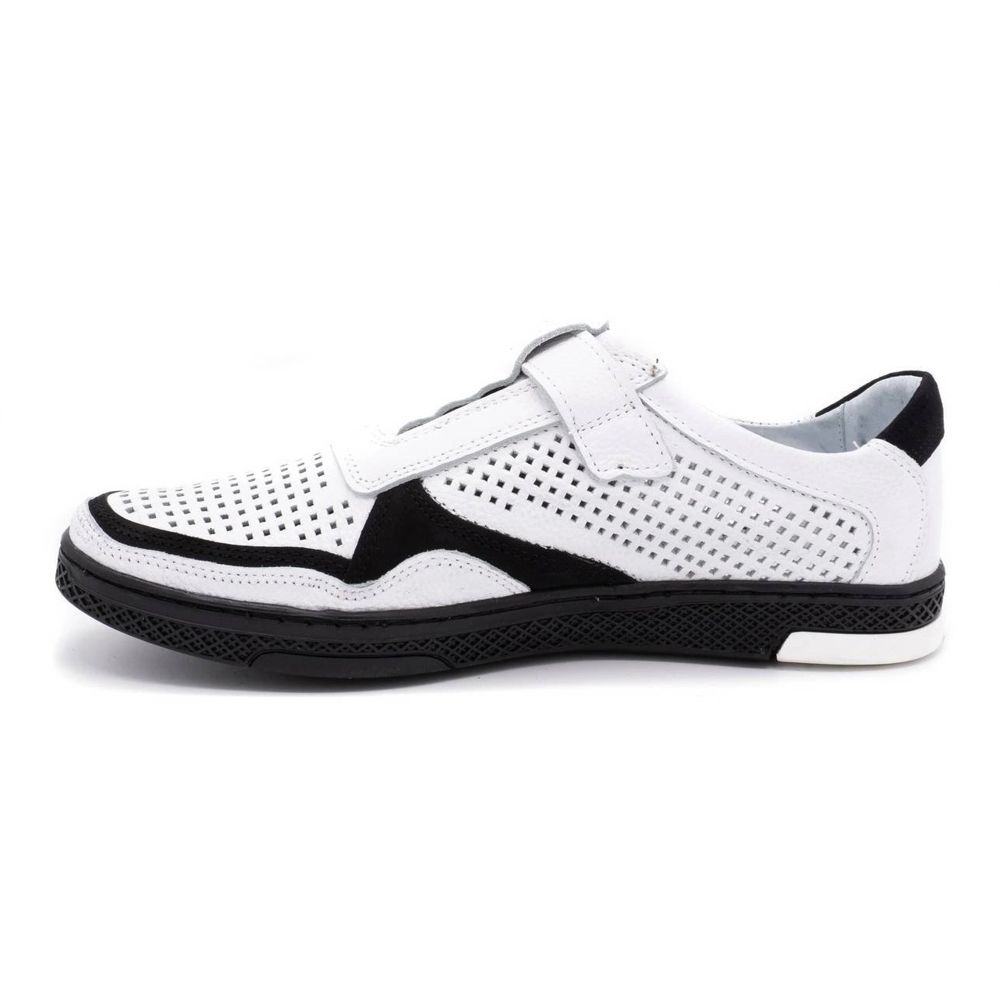 Ovandeln av naturligt läder imponerar med sitt genombrutna mönster, som inte bara ser unikt ut, utan också säkerställer utmärkt ventilation av fötterna. Den runda tån garanterar komfort att bära, och de svarta plastinläggen ger skorna en karakteristisk accent, vilket ger dem ett moderiktigt utseende.