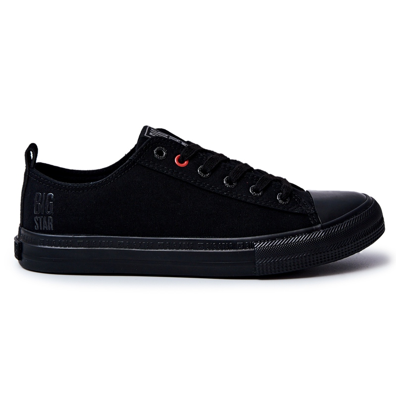 Herrmaterial Sneakers Big Star JJ174003 - En klassiker i svart, som matchar praktiskt taget allt. Tillverkad av hållbart tyg, med ett gummi, förstärkt front, ger ett snyggt utseende och ytterligare skydd mot skador. Modellen med en klassisk snörning gör att du perfekt kan matcha skorna till fotens åt. Den mjuka, materiella innisulan och icke -slippsulan (2,5 cm plattform) ökar användningen av användningen varje dag.