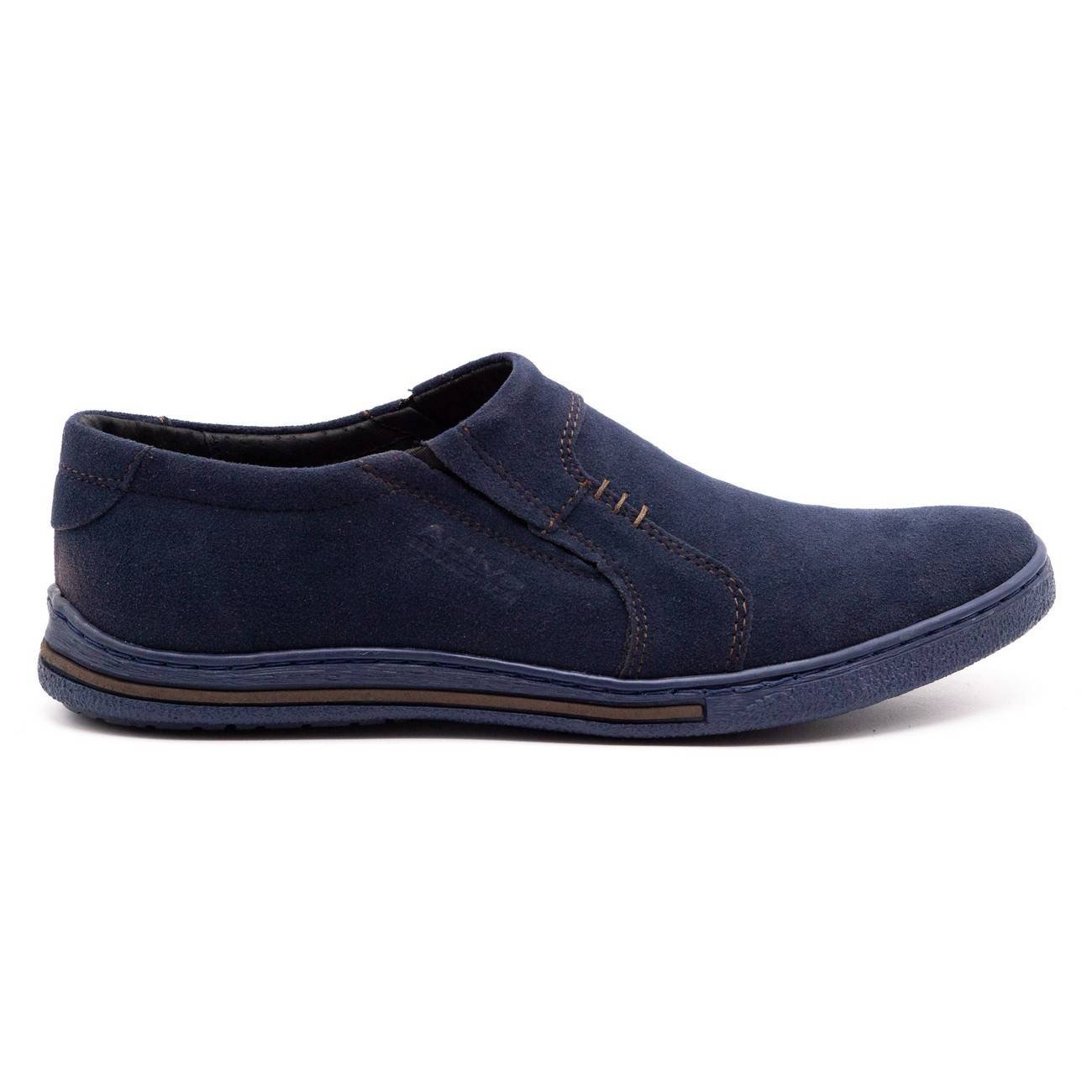 Sulan av syntetiskt material säkerställer bra grepp och hållbarhet, och tillverkningsmetoden - både sömnad och limning - garanterar produktens soliditet och livslängd. Den marinblå färgen utan mönster gör att dessa skor passar perfekt in i en mängd olika herrstilar, från avslappnad till mer elegant.