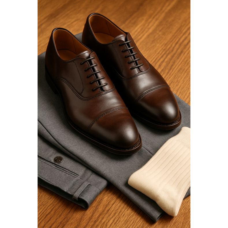 Naturläder är det bästa valet för kontoret. Den andas, anpassar sig till foten och får karaktär med åren. Undvik syntetiska material - de ger inte tillräcklig ventilation och kan få dina fötter att svettas för mycket.