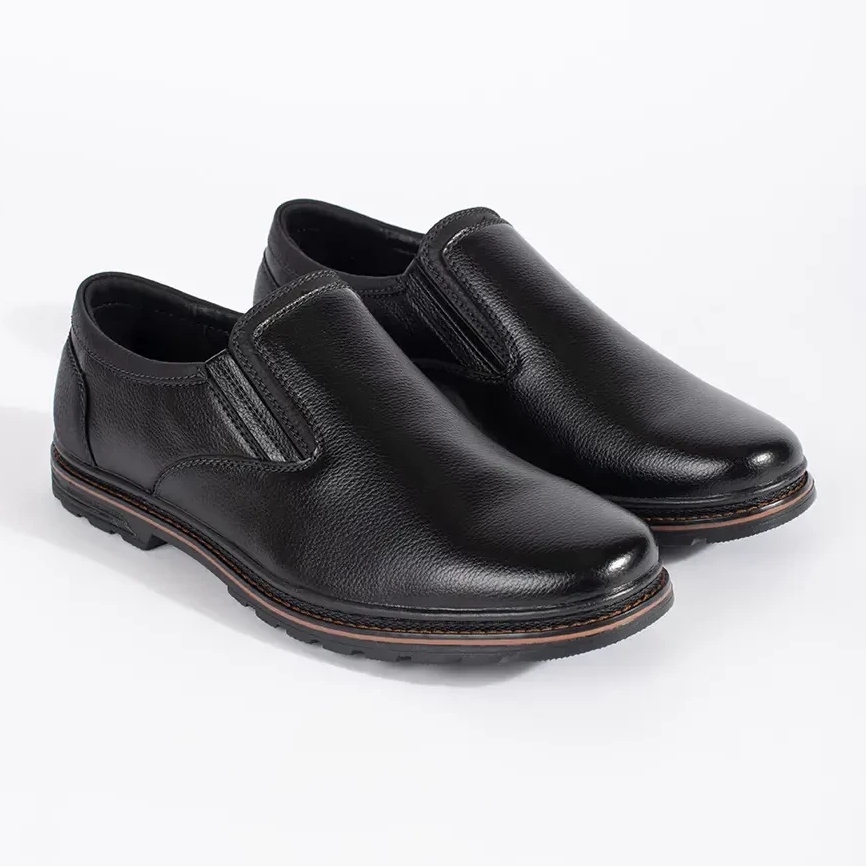 Dessa klassiska skor kommer att fungera i många situationer, från vardagliga uppgifter till mer formella utgångar. Deras universella svarta färg passar perfekt in i den avslappnade stilen, vilket gör dem till ett idealiskt element i varje manlig garderob. Plastsula med en slitbanor garanterar god vidhäftning, vilket gör att du kan bära dem under olika väderförhållanden.