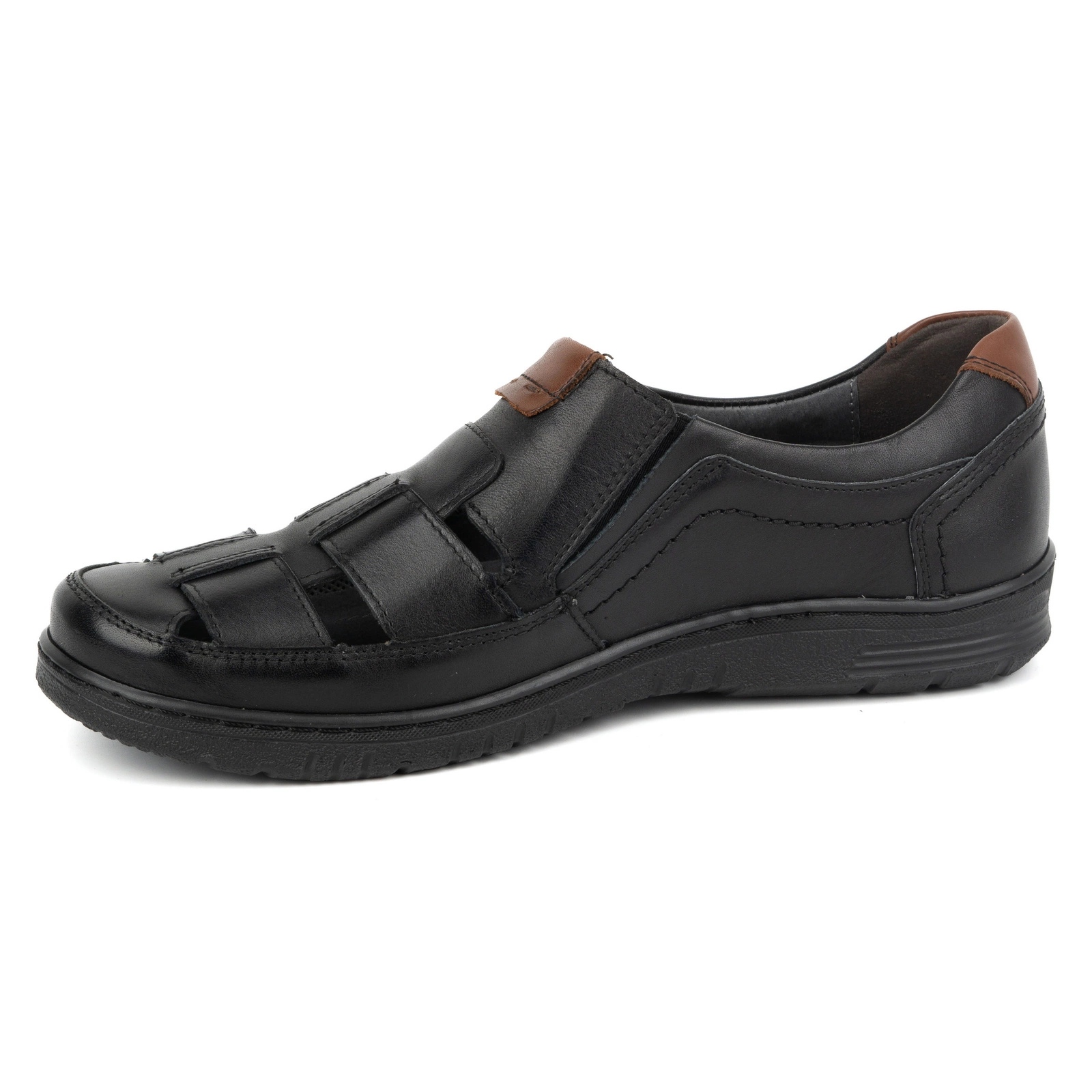 Snyggt och elegant, mäns läderskor avslappnad 86KAM från tillverkaren Kampol är ett utmärkt val för män som värderar komfort och ett fashionabelt utseende. Dessa skor är gjorda av högkvalitativt spannläder, vilket ger dem hållbarhet och en lyxig look. Den klassiska svarta färgen gör att de är perfekt blandade med olika stiliseringar - både avslappnad och mer formell.