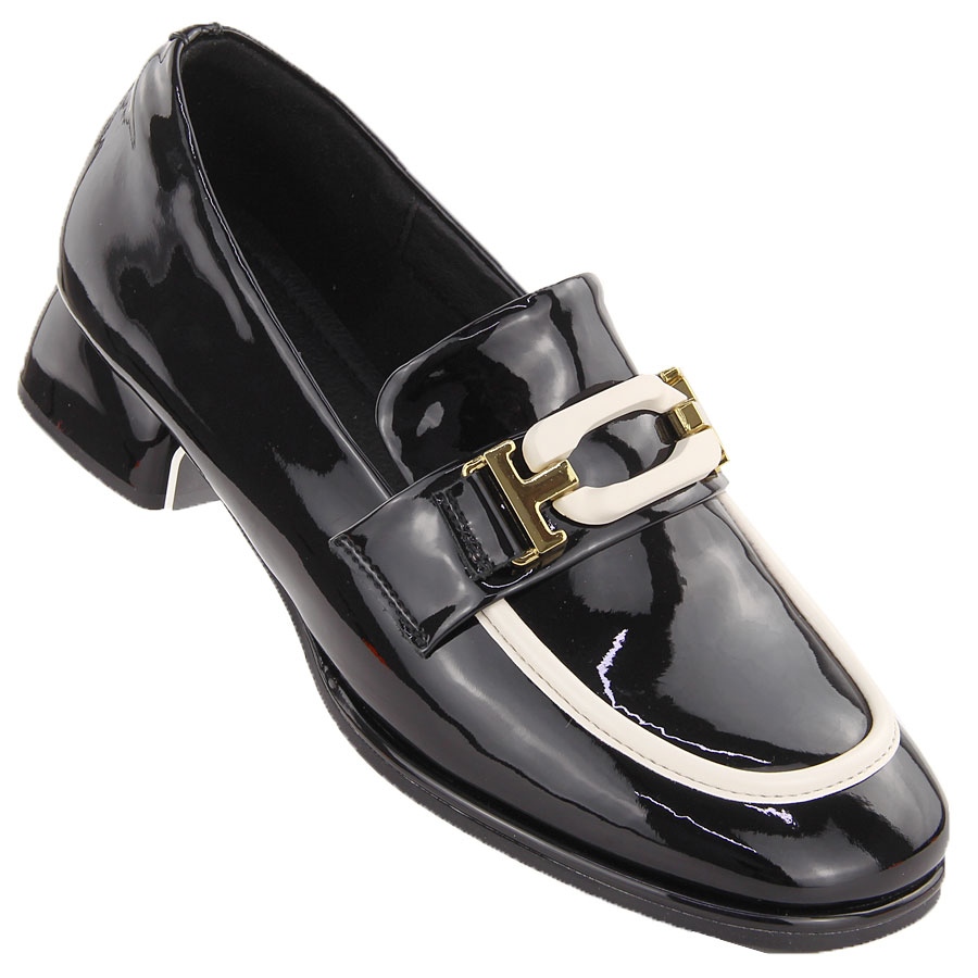 Skodon är tillverkat av naturligt, lackerat läder, som inte bara ser extremt elegant ut, utan också garanterar hållbarhet och komfort. Modellen har en rund näsa och en glidande lås, vilket gör det lättare att ta på sig och ta av. En ytterligare avant -garde ges till en subtil kedja som lockar utseende.