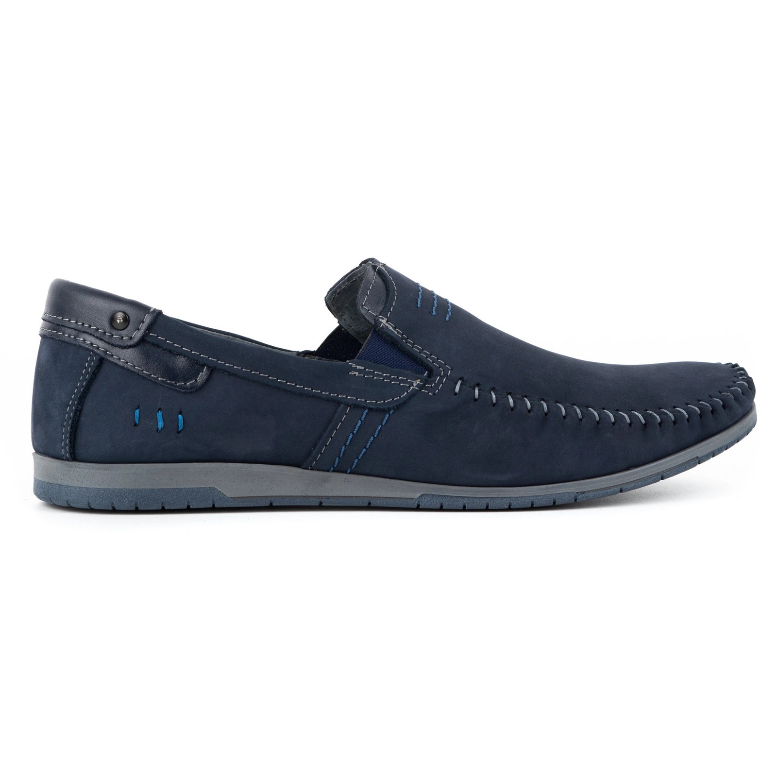 Eleganta och bekväma mockasiner Komodo 876 är ett förslag för män som värderar klassiska och samtidigt fri stil. Tillverkad helt av naturligt läder - externt och internt - ger de utmärkt ventilation och komfort att bära även utan strumpor. Den marinblå, dämpade skuggan kommer lätt att anpassa sig till sommaren och tillfälliga stiliseringar.
