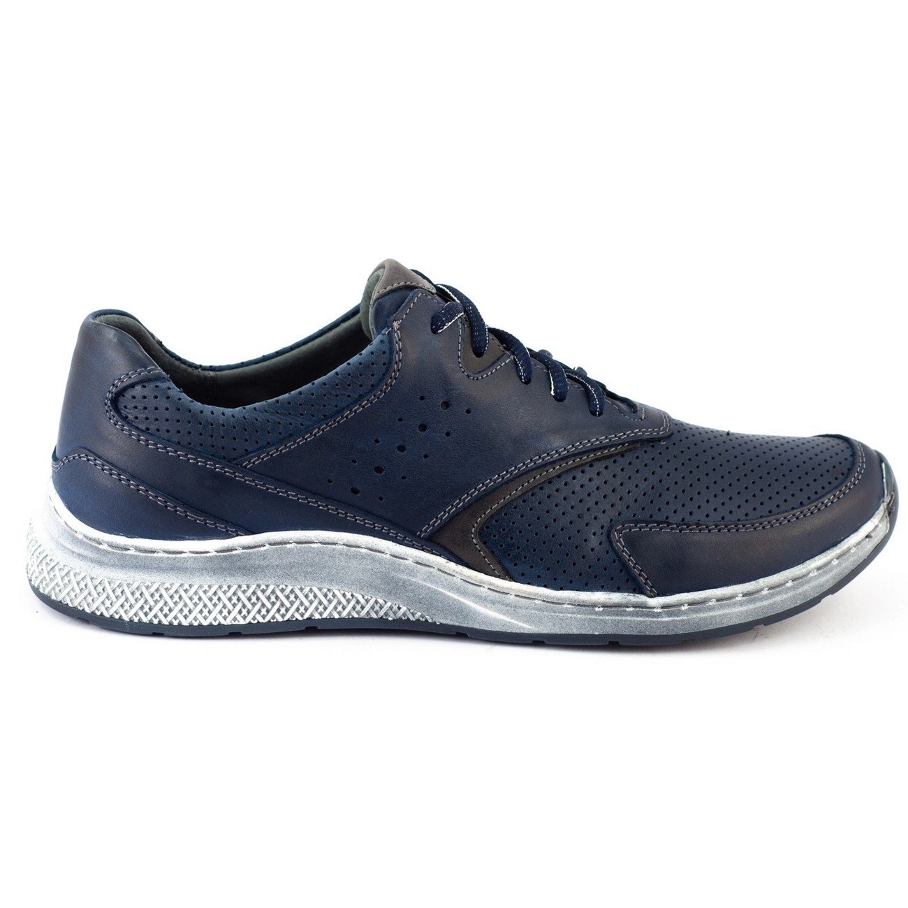 Upptäck komfort och stil med Polbut J72 sportskor för män i nyanser av marinblått och blått. Det är ett utmärkt val för män som värdesätter vardagskomfort kombinerat med attraktiv design. Dessa skor är gjorda av högkvalitativt naturligt läder och ger inte bara ett estetiskt utseende, utan är också lätta att rengöra.