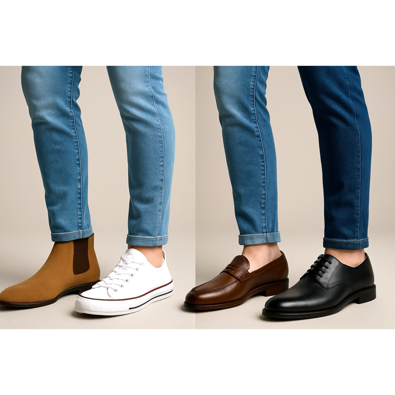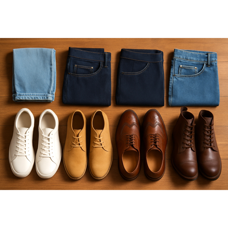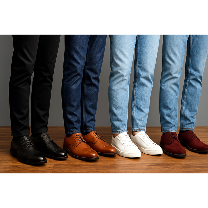 En komplett guide för att välja herrskor för olika jeansstilar. Lär dig reglerna för styling från slim fit till baggy och upptäck de perfekta kombinationerna.