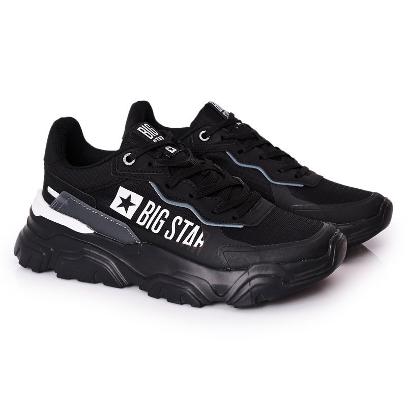 Herrsportskor Memory Foam Big Star HH174209 i elegant svart och blått är det perfekta valet för aktiva män som letar efter komfort och stil. Produkten från det polska märket Big Star kännetecknas av dess utmärkta utförande och moderna design. Ovandelen av skorna är gjord av luftigt, högkvalitativt tyg, britsen ger utmärkt ventilation, vilket är oerhört viktigt under intensiv träning.