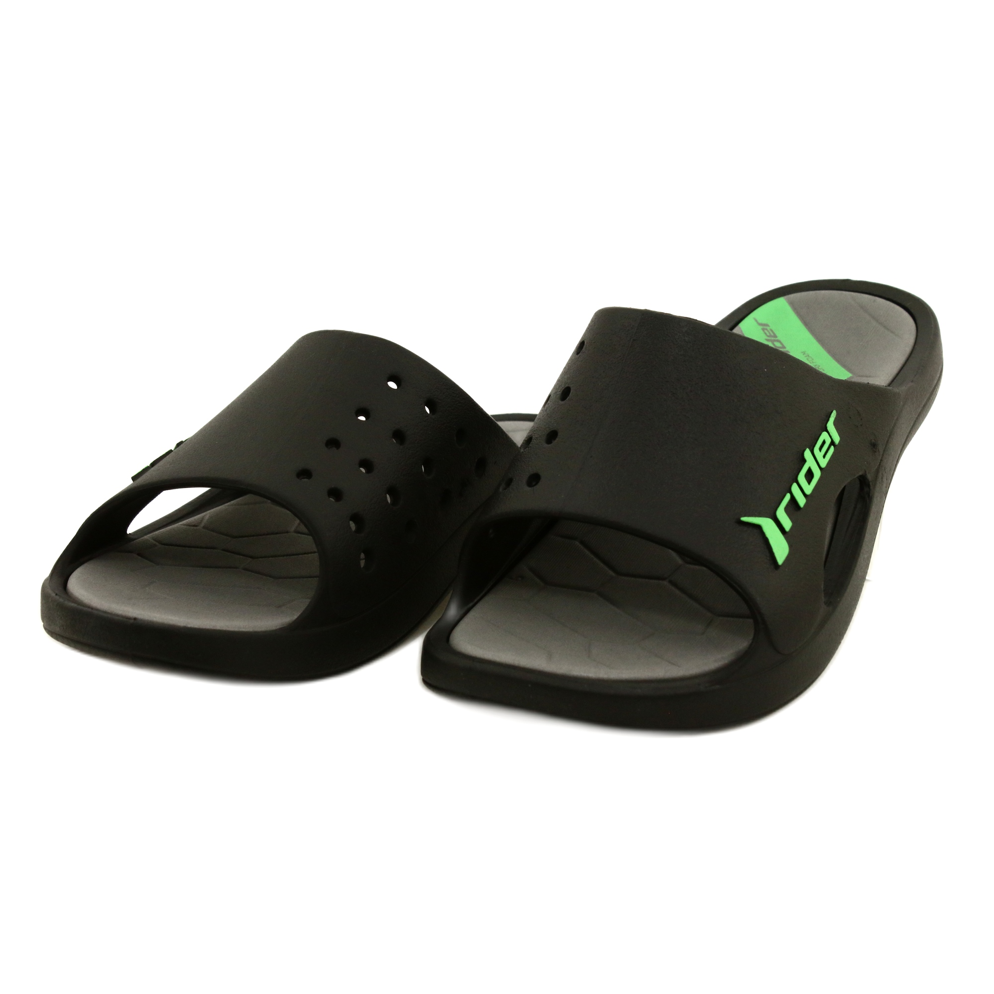 Upptäck ett nytt ansikte av komfort med Rider BAY X AD 83060 23899 flipflops för män i svart, grått och grönt. Dessa multi-tasking flip-flops från en känd brasiliansk tillverkare är den perfekta lösningen för män som värdesätter både stil och komfort.