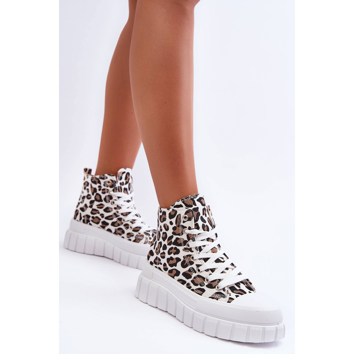 Information: PS1 High Top Sneakers Dam Leopard Mönster Vit Florens