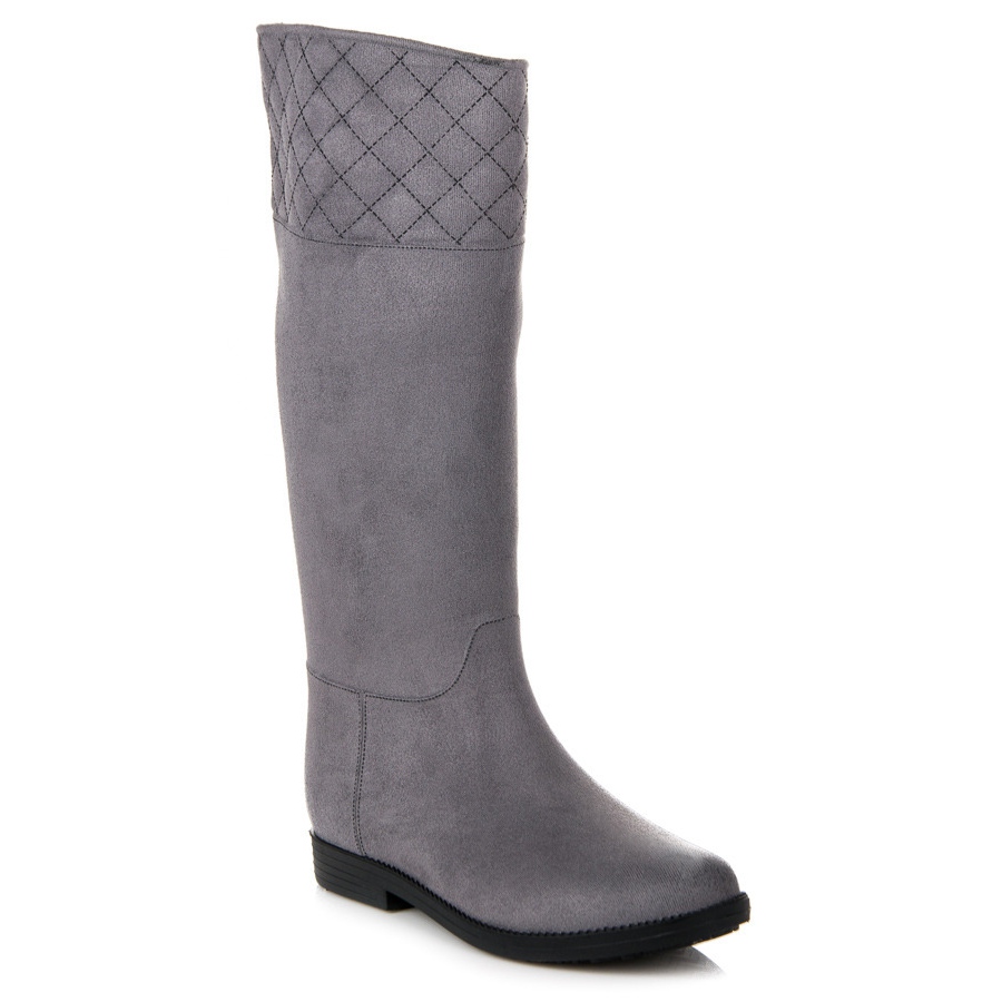 Höga wellingtonstövlar i mocka i en elegant grå nyans är ett perfekt val för kvinnor som värdesätter både stil och funktionalitet. Dessa gummistövlar är gjorda av delikat, ekologisk mocka och kombinerar modern design med en praktisk inställning till väderförhållanden. Tack vare den platta sulan erbjuder de maximal komfort och bekvämlighet att bära hela dagen, vilket gör dem till en idealisk lösning för kallare, regniga dagar.